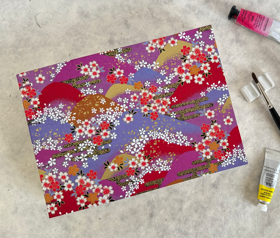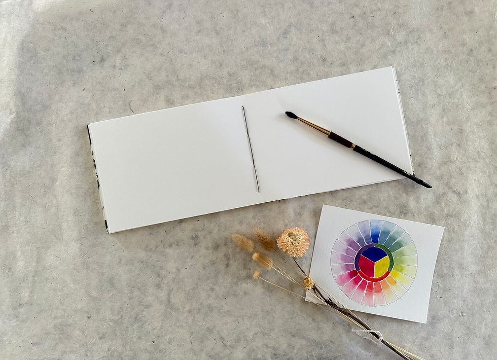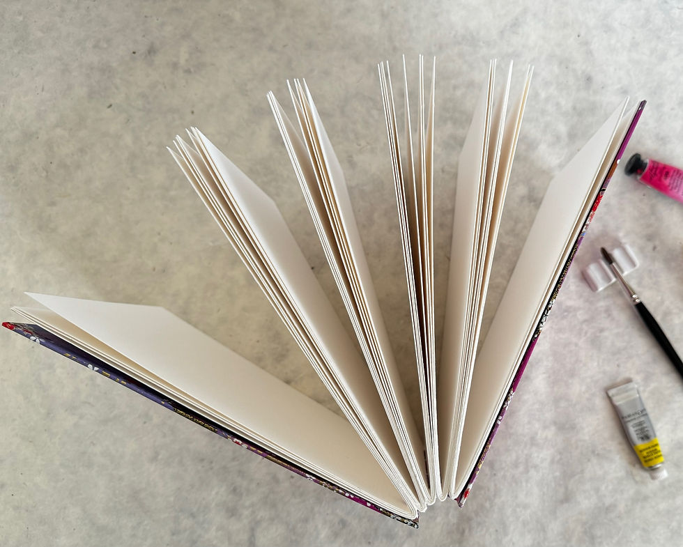 Des carnets aquarelle fabriqués avec une reliure copte (ouverture à plat ), avec du papier Hahnemüle expression, Arches, Fabriano armistice, canson, grain fin, satiné ou torchon.